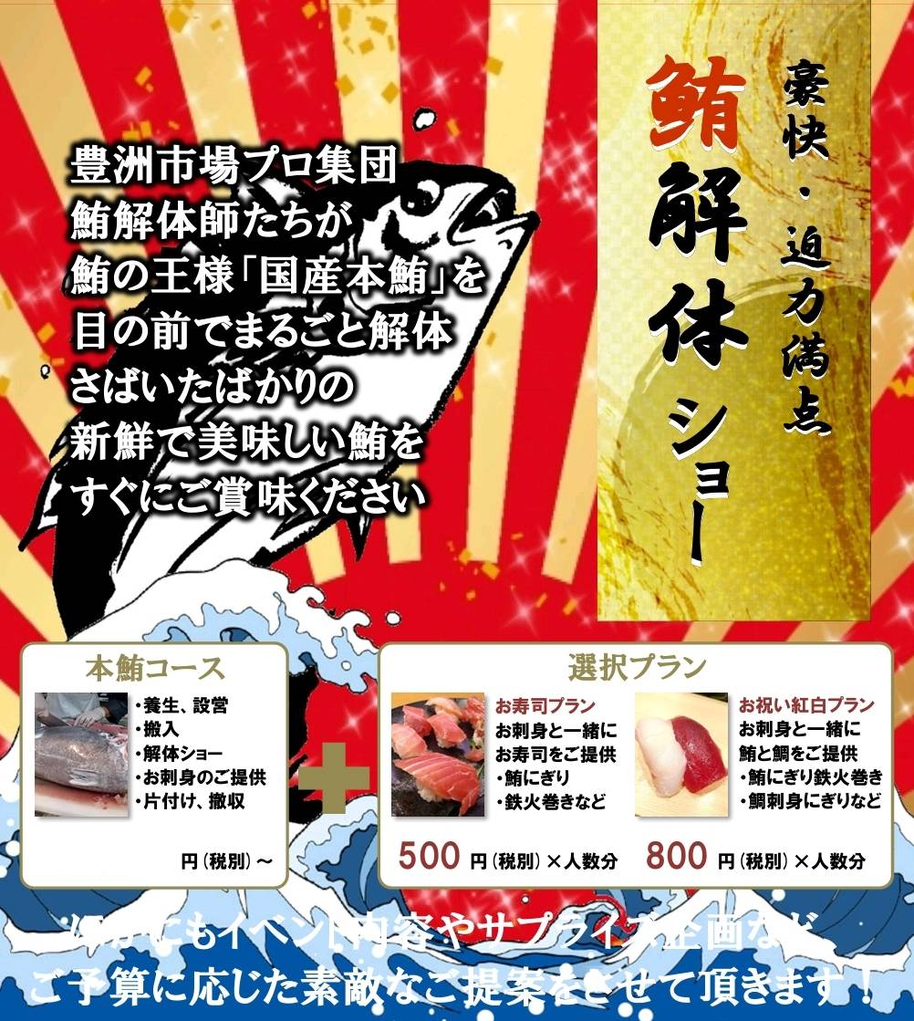 ◆新年会・忘年会・結婚式・懇親会・周年記念・サークル活動・婚活パーティー・異業種交流会・・・など様々なイベント会場ホテル会場などでマグロ解体showを致します。